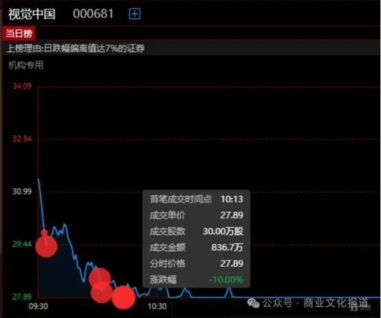 25 日,又有三路游资入场抄底,使得视觉中国从跌停板短暂拉起,但最终仍以跌 9% 收盘。