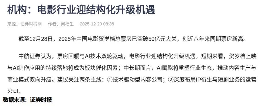 其实看到这新闻我第一反应不是“哪部电影好看”,是“这不就跟咱们炒股一样吗?”——总盯着表面的热闹(比如贺岁档某部电影的单日票房),没抓住背后的核心(比如AI技术、用户结构的变化);炒股时总盯着股价涨涨跌跌,没看清机构到底在干啥。你说是不是?
