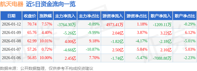 1月12日的资金流向数据方面,主力资金净流出3764.3万元,占总成交额0.89%,游资资金净流入4973.41万元,占总成交额1.18%,散户资金净流出1209.11万元,占总成交额0.29%。